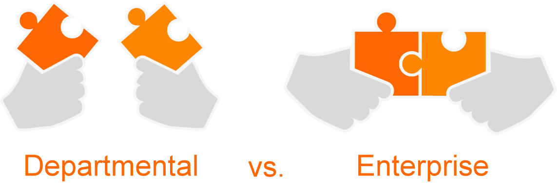 An enterprise solution breaks down the barriers of a departmental solution and offers the organization a system that is not characterized by department or local. The data is available at an enterprise level and accessible with proper rights to people across the enterprise.